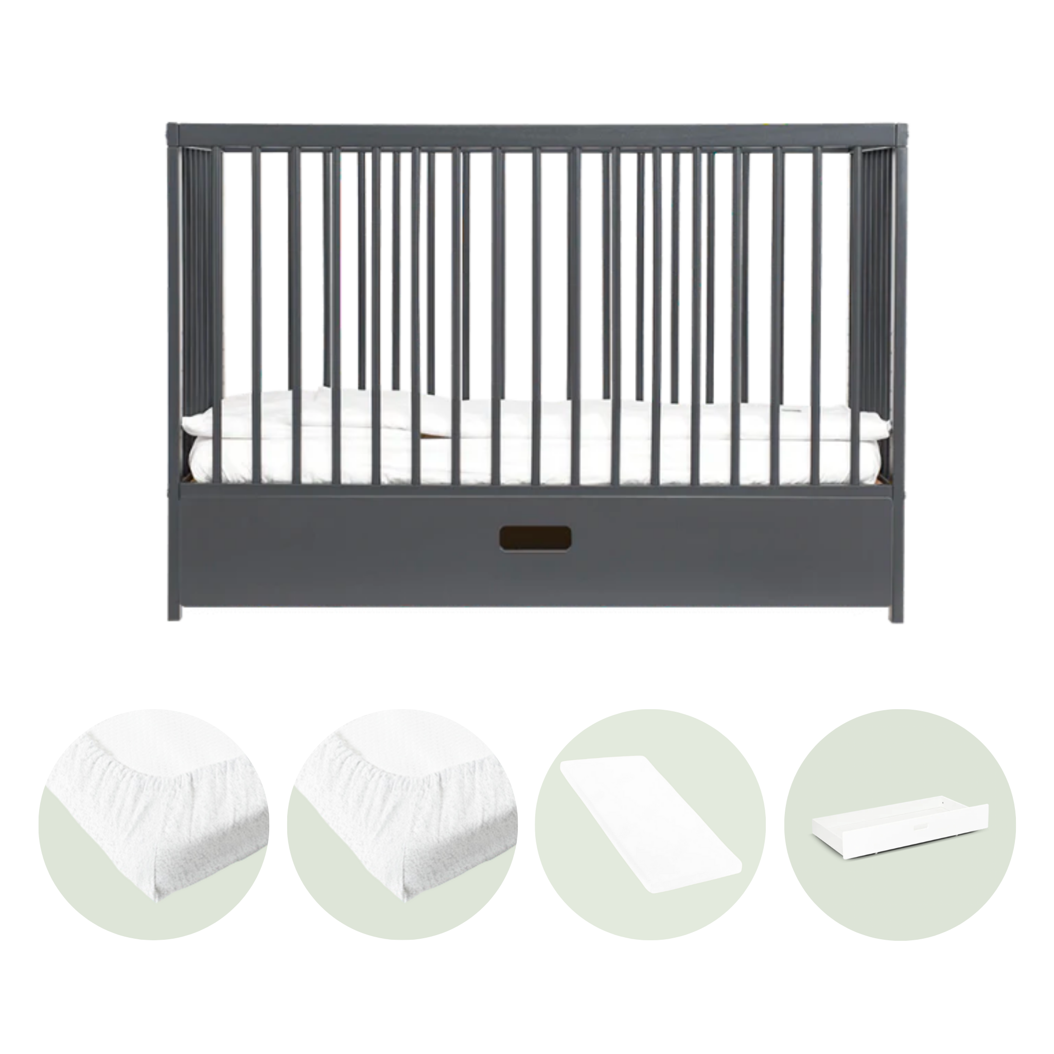 Notre ensemble Essentiel est le kit parfait qui conviendra à toutes les ambiances de chambre ! Il comprend un lit bébé de votre choix, un matelas à l'Aloe Vera, un drap-housse et un protège-matelas - tout ce dont votre bébé a besoin pour un environnement de sommeil confortable et sûr, le tout à un excellent prix.