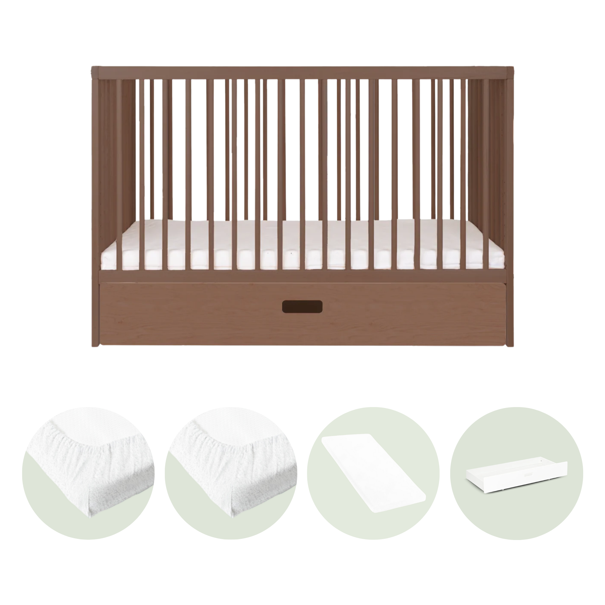 Mini Lit Bébé avec Tiroir & Matelas Aloe Vera | Noyer