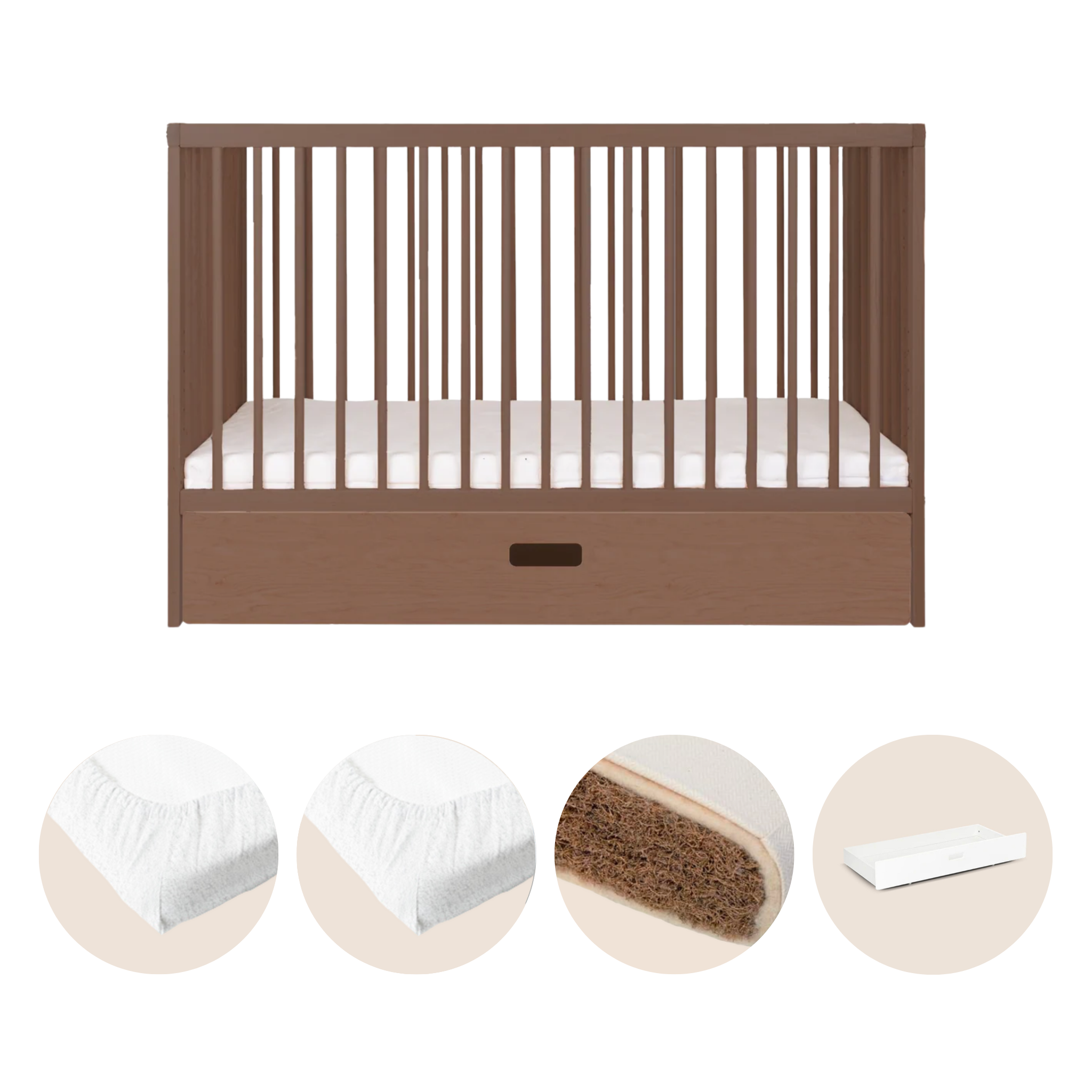 Mini Lit Bébé avec Tiroir & Matelas Naturel | Noyer