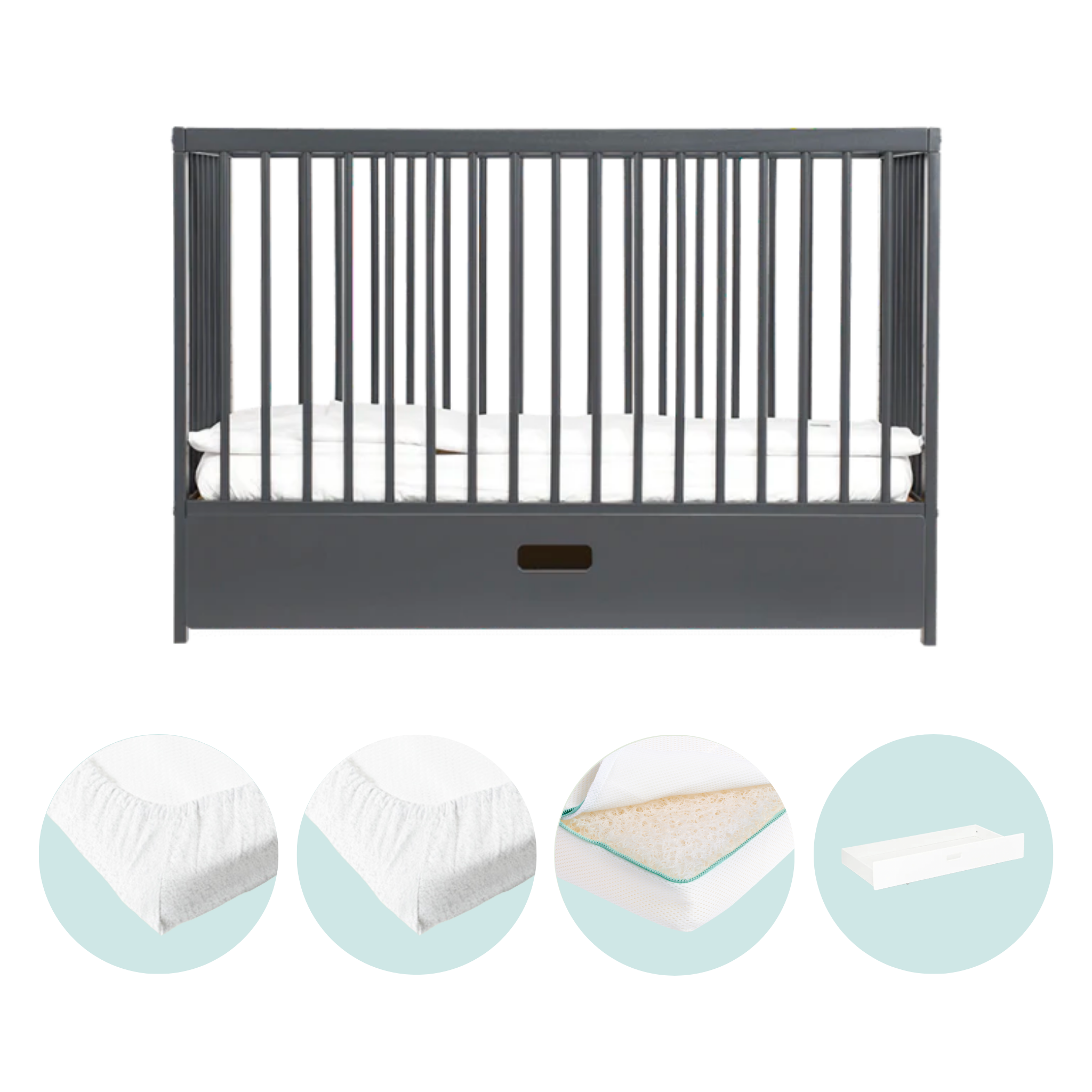 Mini Lit Bébé avec Tiroir & Matelas Respirant | Bleu Grisé
