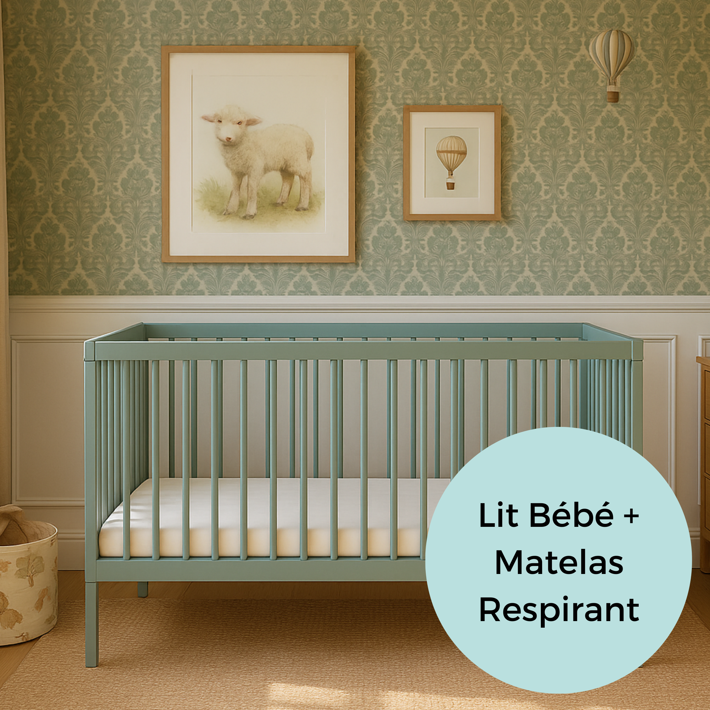 Midi Lit Bébé avec Matelas Respirant | Vert Bleuté