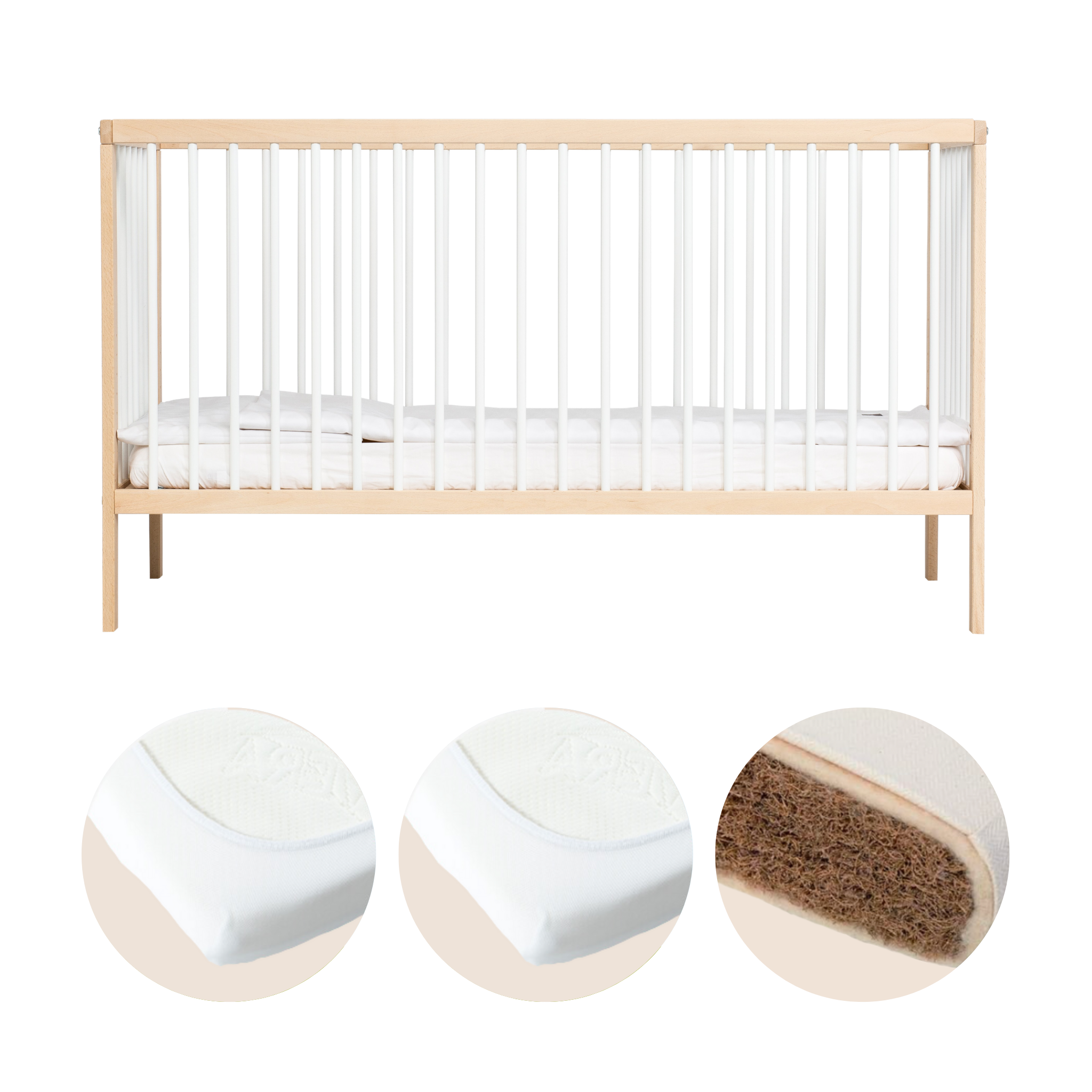 Midi Lit bébé avec Matelas Naturel | Hêtre Blanc